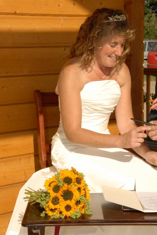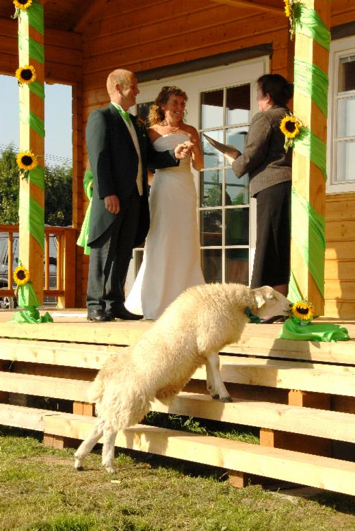 The house is nigh-on finished and the dream has finally come true so now what? A PARTY!!!!!!!!!!!!!! Paul, Sam and I wanted to mark the start of the rest of our lives together on the farm with a bang and what better way to do it than for Paul and I to renew our marriage vows at our beautiful new home. The next question was, when to do it. Wanting to have the day on a beautiful summer's day may be difficult but we decided on the 30th August 2008. This was a very sentimental day as, if my Dad was still with us, it would have been Mum and Dad's 50th wedding anniversary so what better day to choose. Mum was excited about it and so all the plans started - well they didn't for us we left it all to Sophie!!!! And I have to say she did us proud. The day started at 5.00 a.m., with birds and then we danced 'til midnight and every single minute went by without a hitch. I think it was a first for the DJ to have Springer Spaniels and Bassett Hounds on the dancefloor too. For those who didn't make it, being too far away, I attach some photos below taken on the day and hope that you will get an idea of how the day went. Paul, Sam and I would like to thank Sophie once again for making this day so memorable as without her it wouldn't have happened.