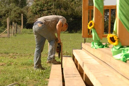 3pm - Anya the photographer arrived and caught Paul putting the steps on the verandah - perhaps I should mention kick-off was 4pm!!